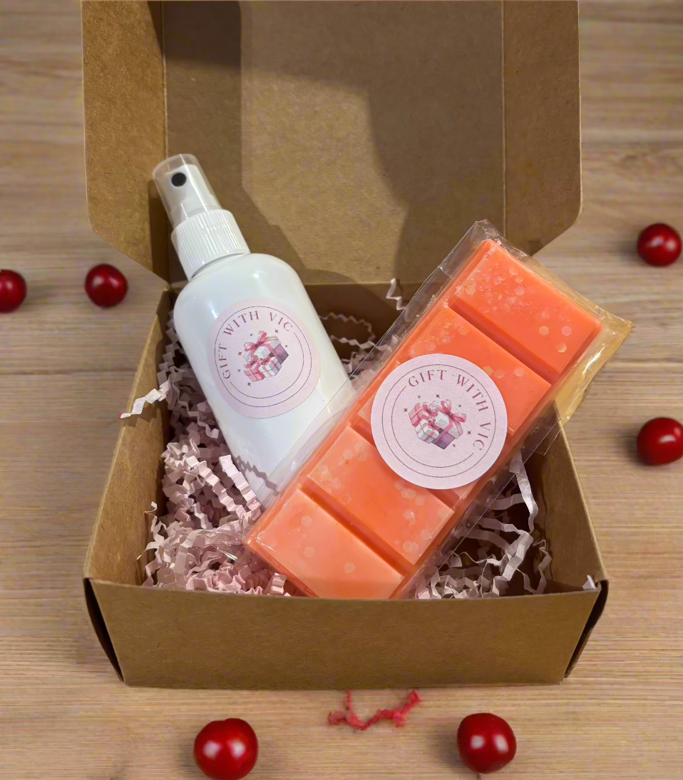 Bundle includes our black cherry room & linen spray (100ml), and our black cherry wax snap bar (minimum 50g).