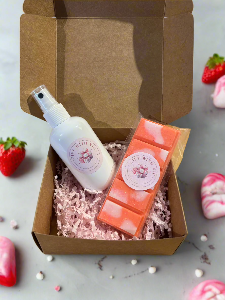 Bundle includes our strawberry bon bon room & linen spray (100ml), and our strawberry bon bon wax snap bar (minimum 50g).